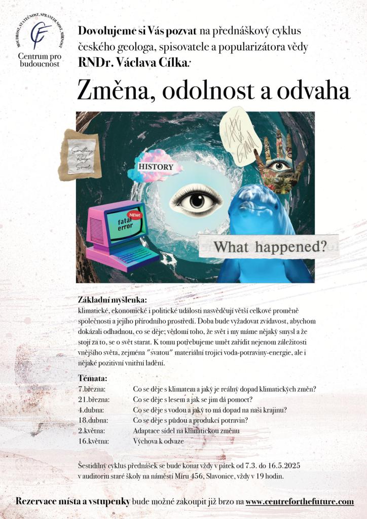 Centrum pro budoucnost pořádá šesti dílný cyklus přednášek s RNDr. Václavem Cílkem, českým geologem a popularizátorem vědy. 2. května od 19 hodin je tématem přednášky adaptace sídel na klimatickou změnu.